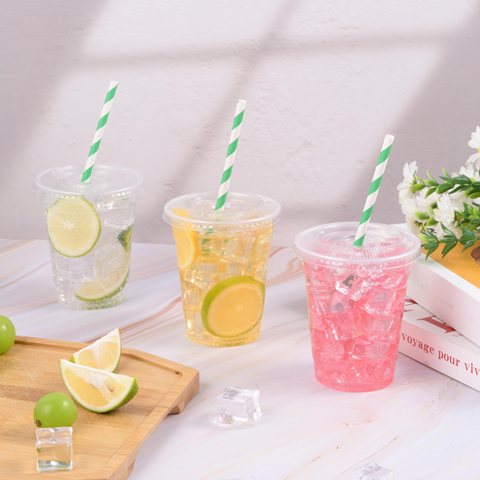 12oz 14oz 16oz 20oz PET-Getränke becher Benutzer definiertes Logo Gedruckte klare PET-Plastik becher mit Kuppel und Deckel für kalte Getränke